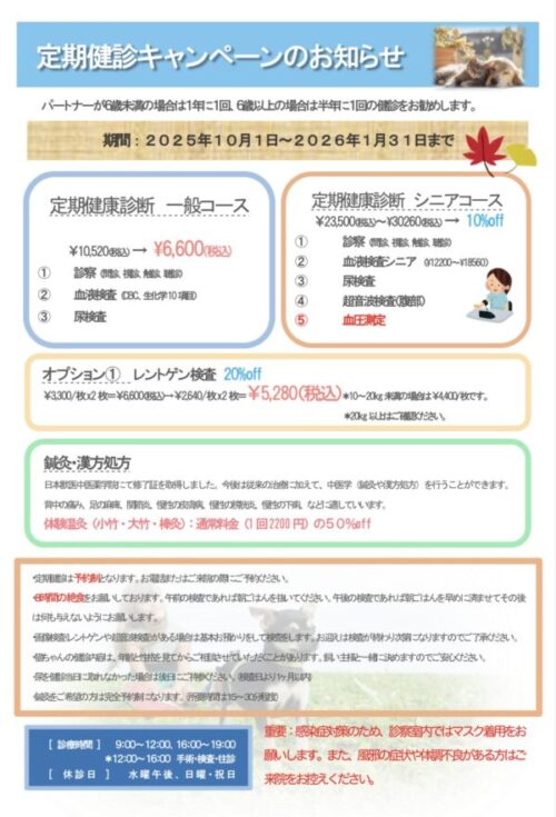 毎年秋冬に定期健診キャンペーンを行なっています。